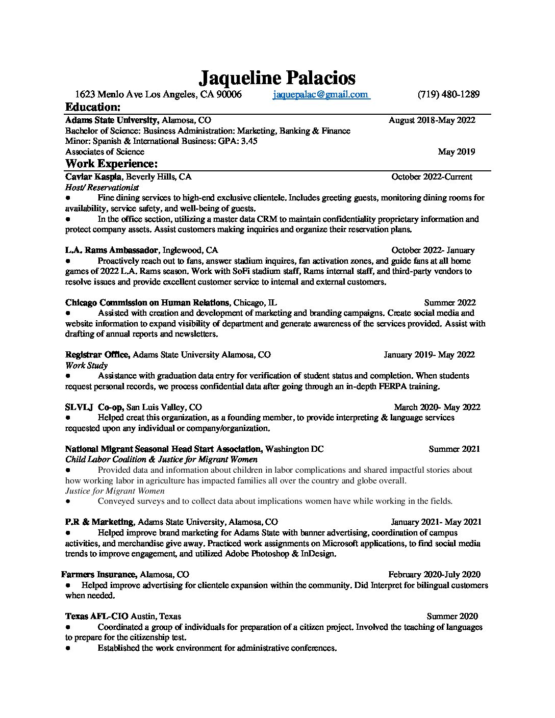 - College/Univ: Adams State University
